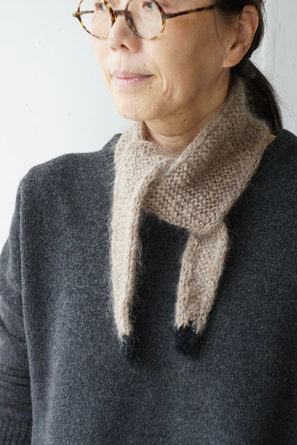 小さなマフラーは柔らかなモヘヤの毛糸で編みました。