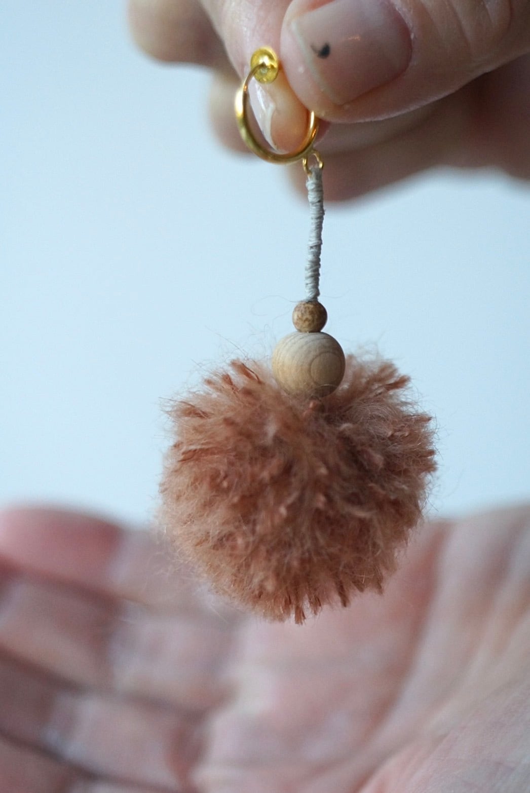冷たい風が吹く季節、耳元で揺れるモヘヤのポンポンが楽しい気分にさせてくれます。