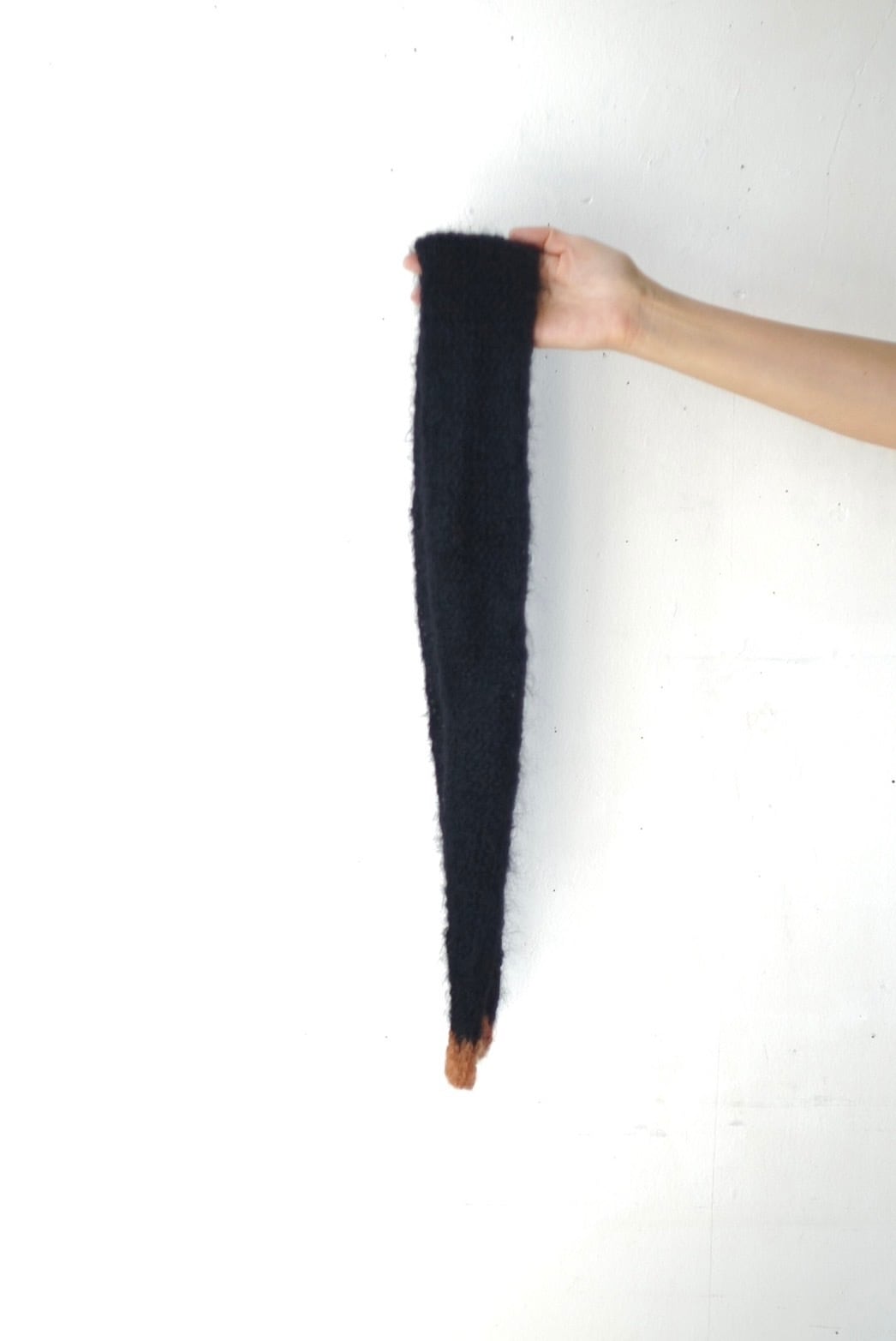 小さなマフラーは柔らかなモヘヤの毛糸で編みました。