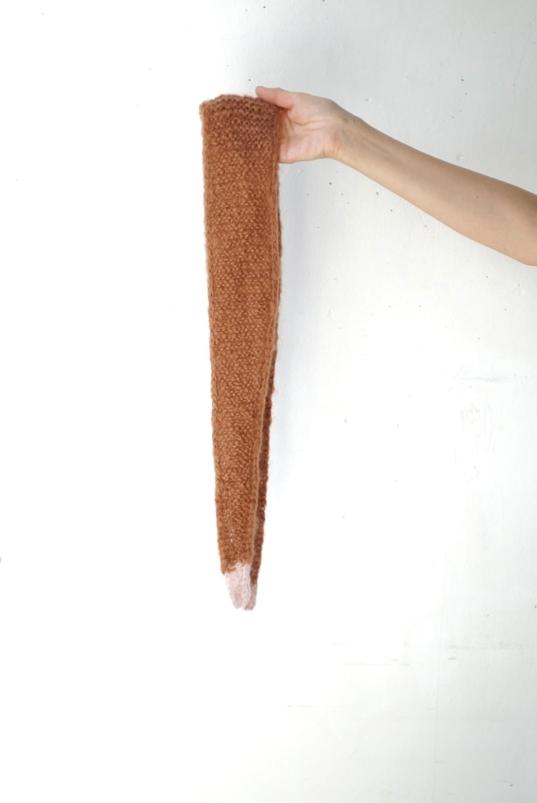 小さなマフラーは柔らかなモヘヤの毛糸で編みました。