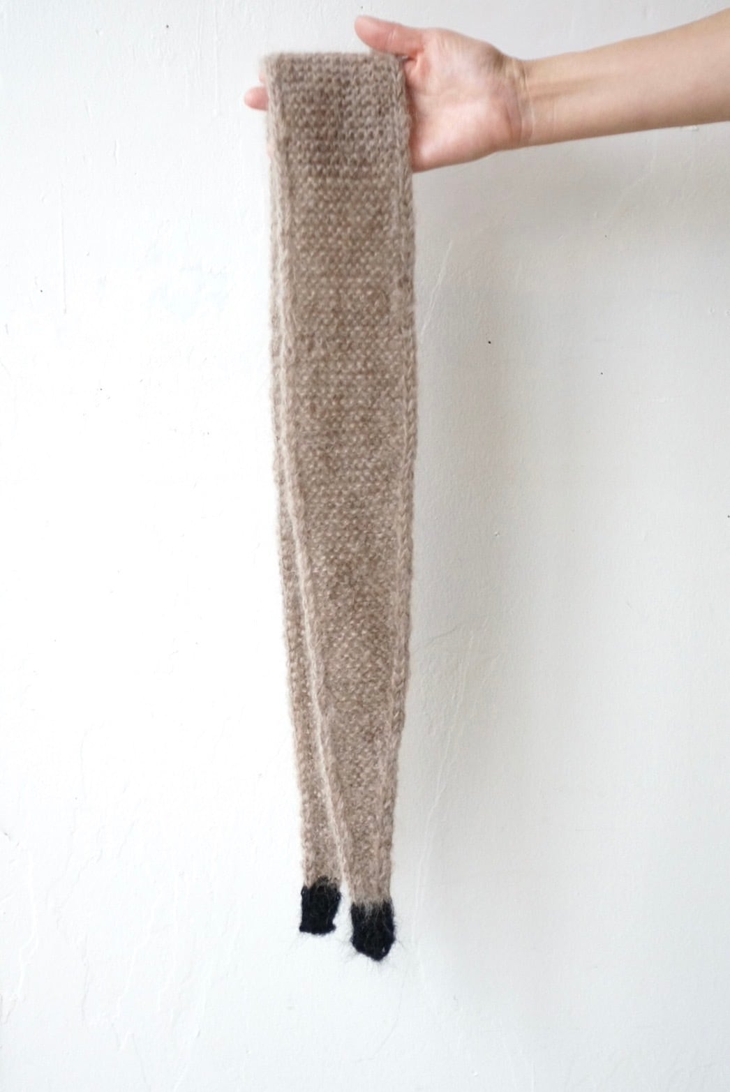 小さなマフラーは柔らかなモヘヤの毛糸で編みました。