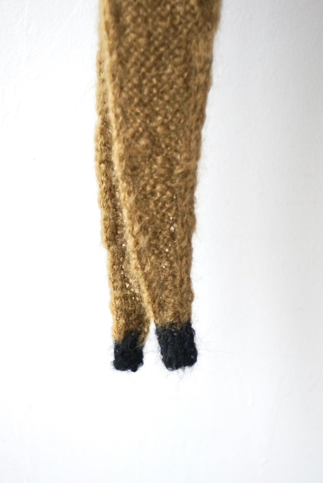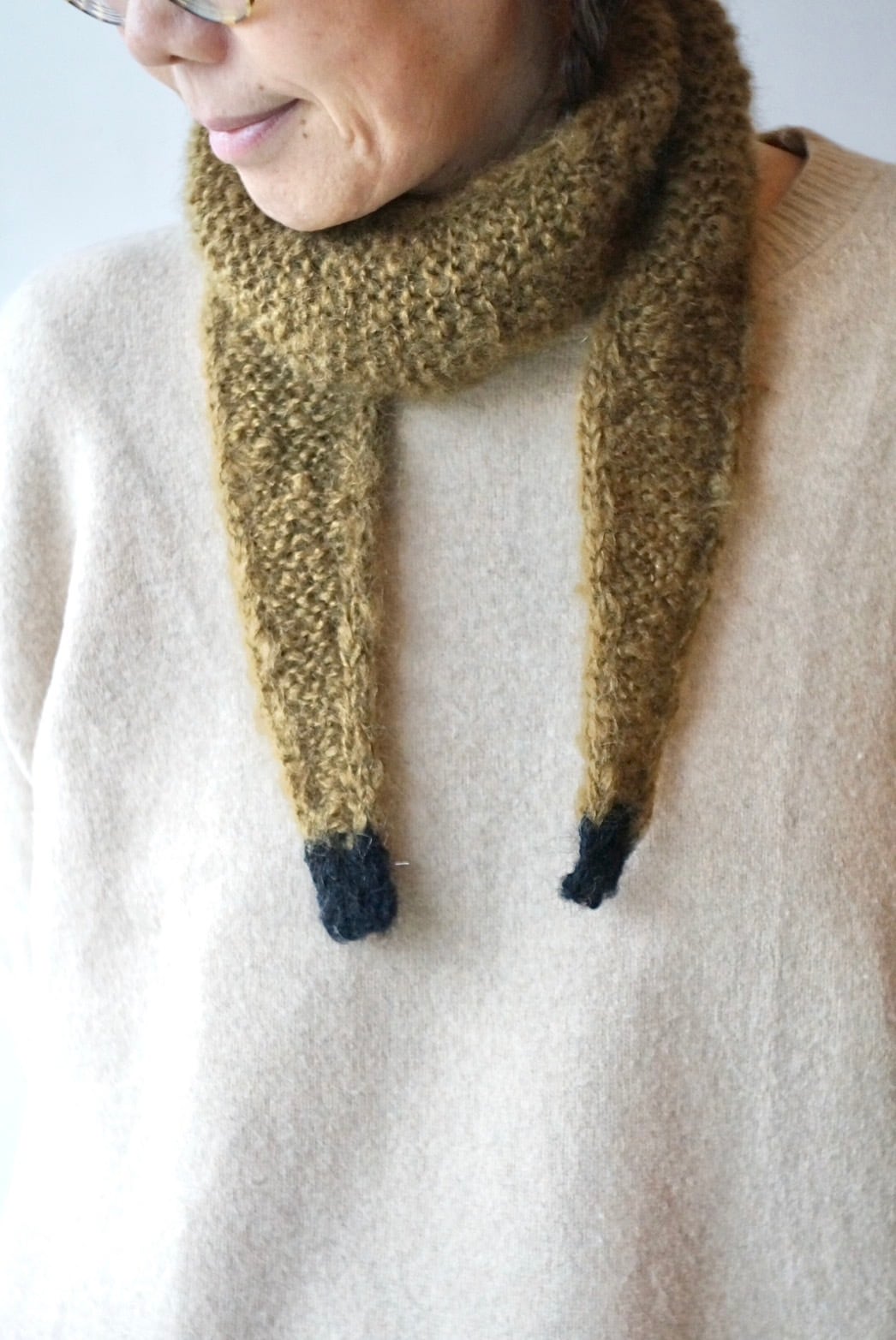 小さなマフラーは柔らかなモヘヤの毛糸で編みました。
