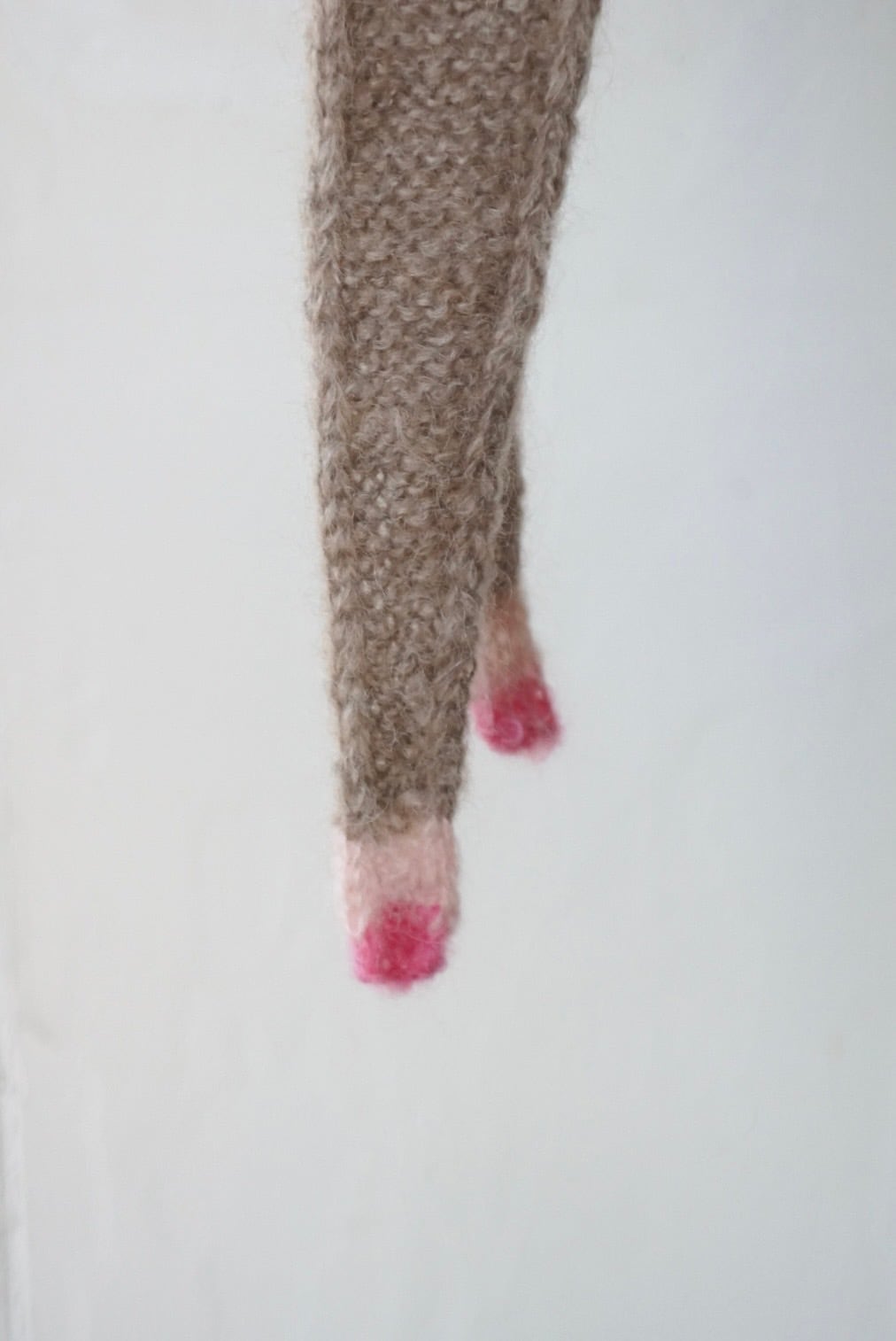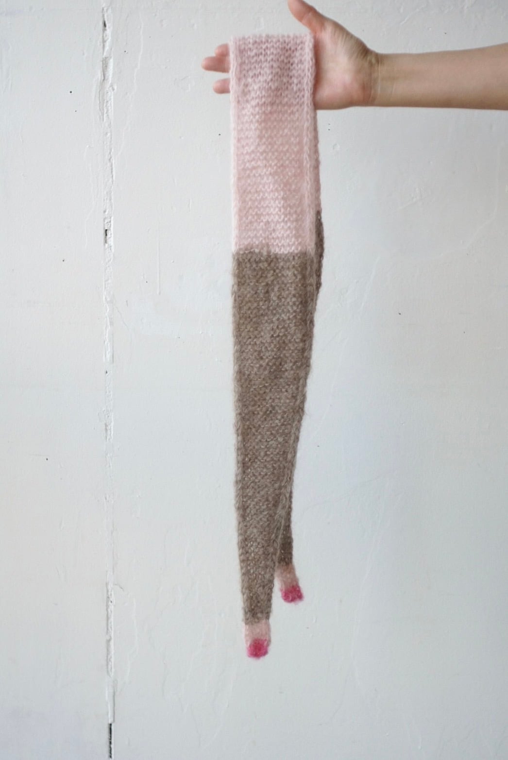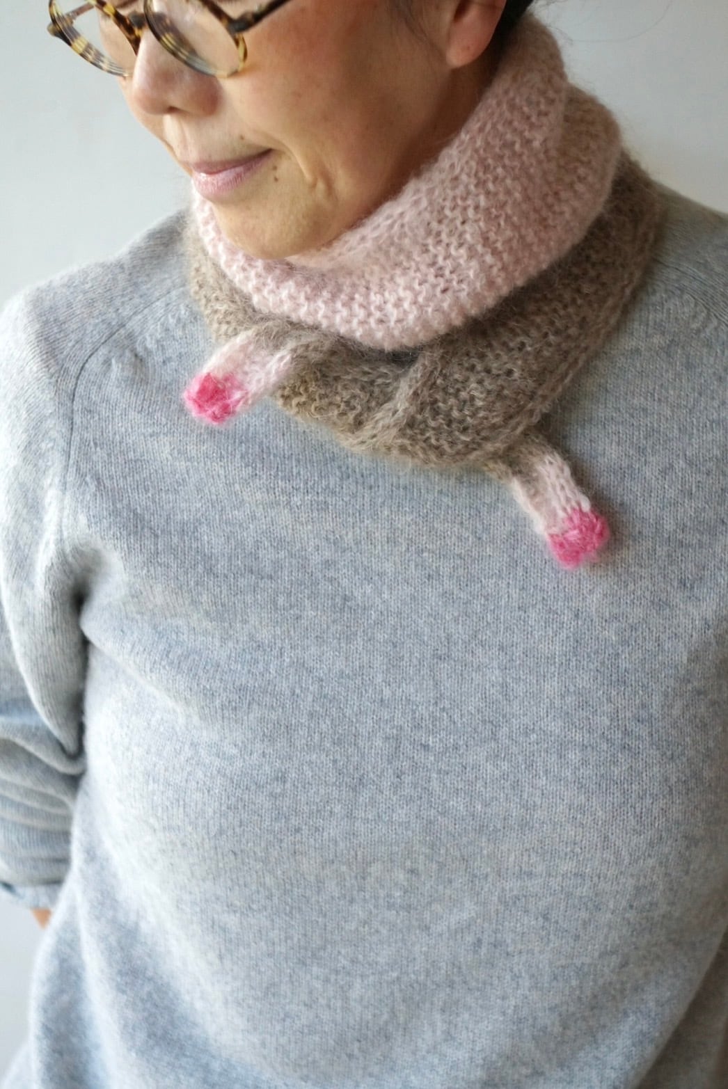 小さなマフラーは柔らかなモヘヤの毛糸で編みました。