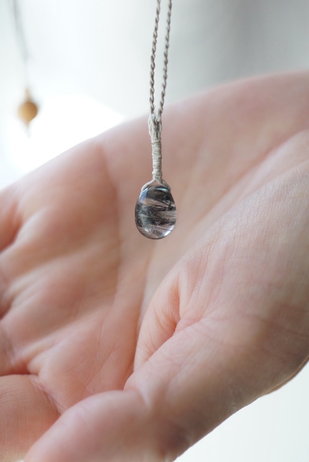 透明な水晶の中に、黒い針状の鉱物が内包されたエネルギッシュな石です。