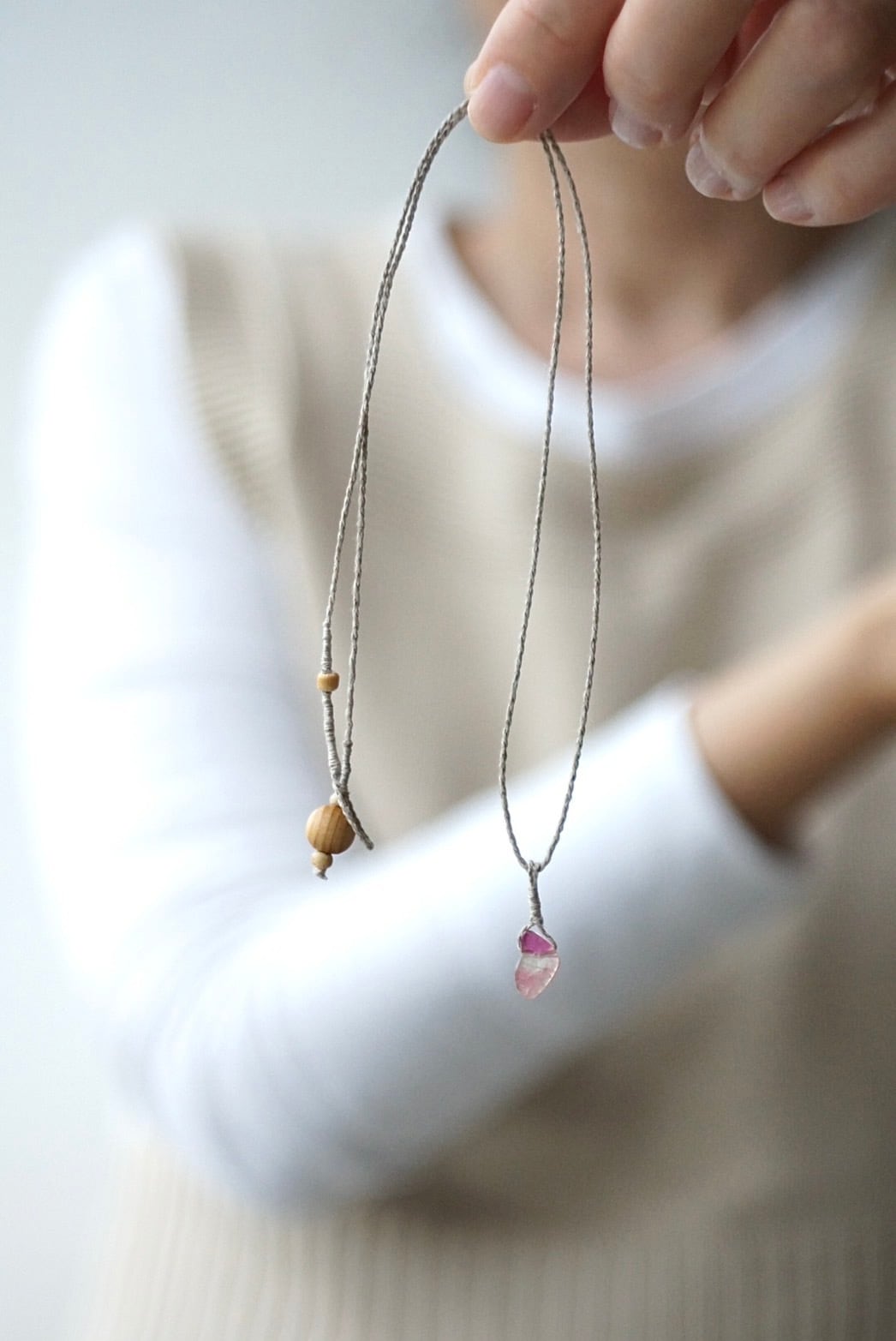Mindrope(マインドロープ)は麻糸を一つ一つ手編みした紐と石の定番のアクセサリーです。感覚的に事象を読み取り、その時期に相応しい石をセレクトしています。