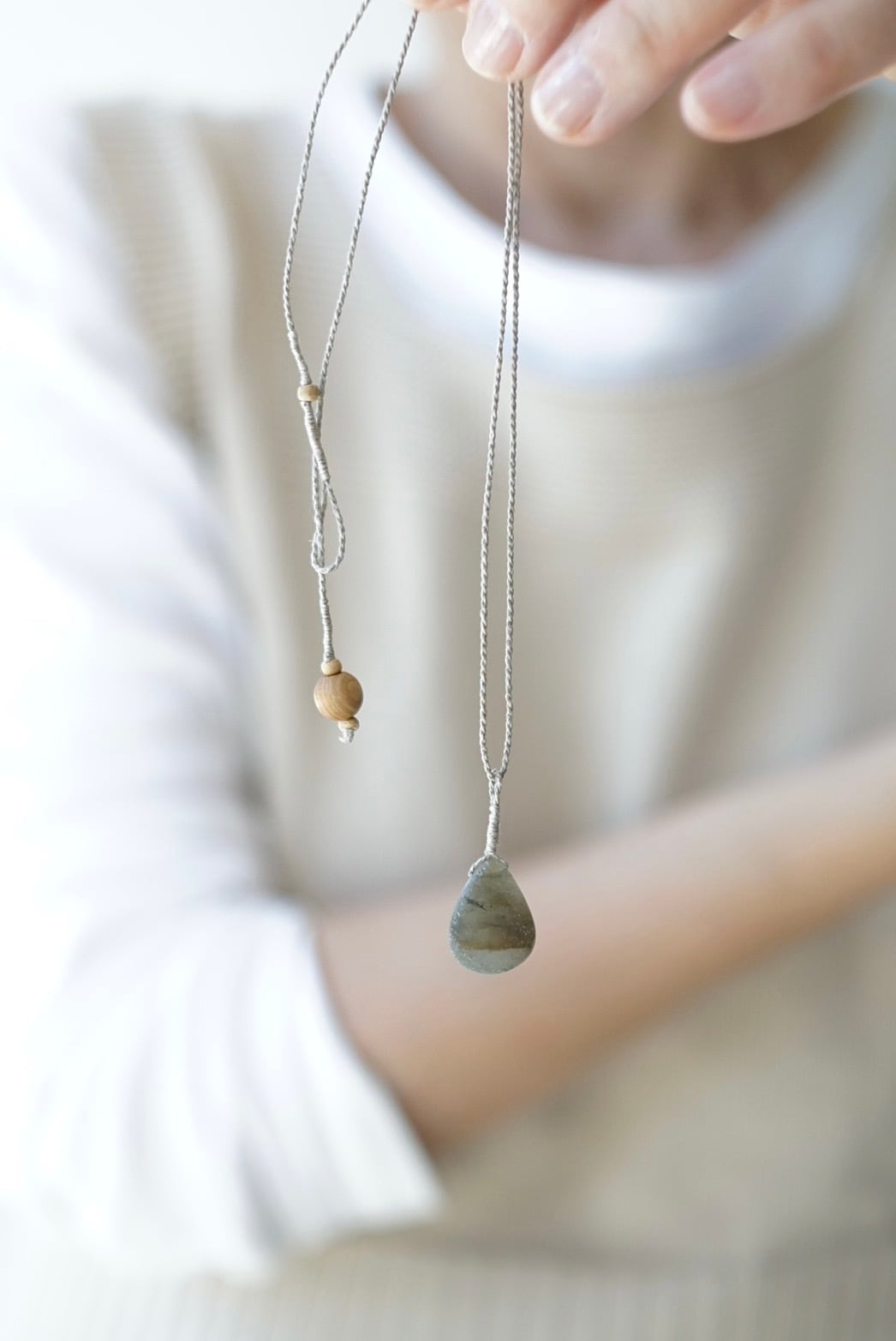 Mindrope(マインドロープ)は麻糸を一つ一つ手編みした紐と石の定番のアクセサリーです。感覚的に事象を読み取り、その時期に相応しい石をセレクトしています。